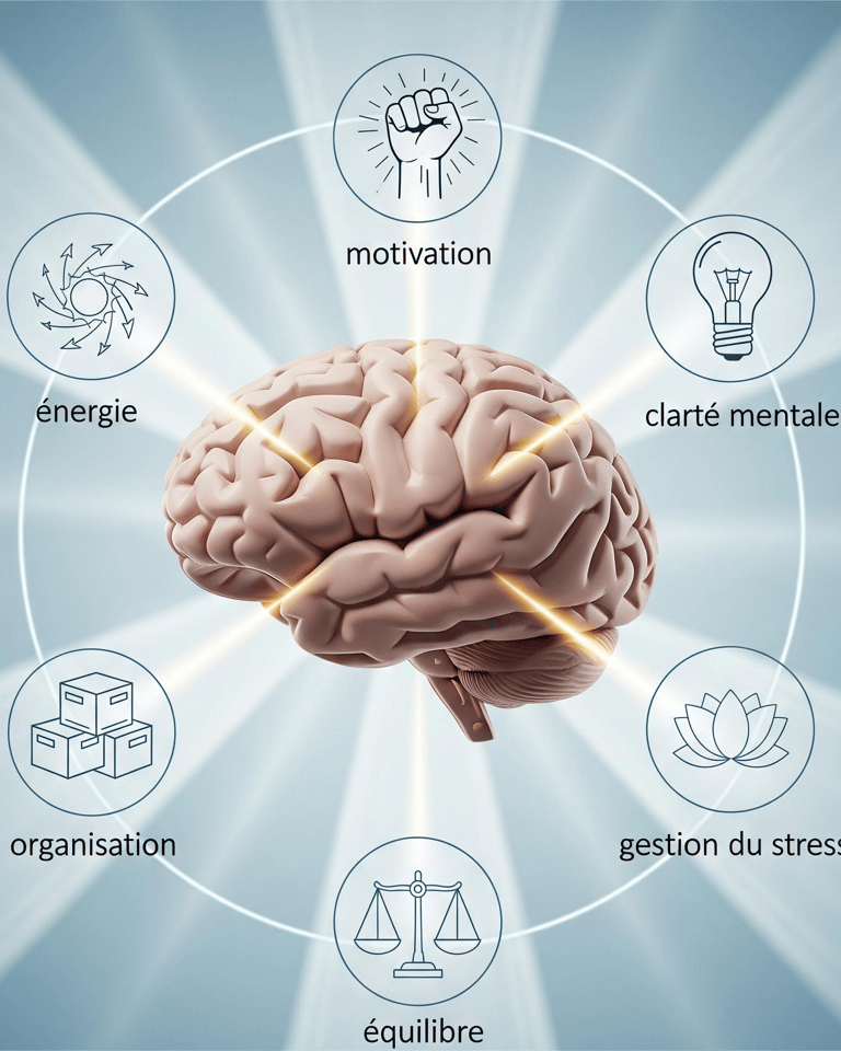 J'ai intégré les neurosciences à ma méthode pour vous donner le pouvoir de comprendre. Comprendre pourquoi la fatigue vous submerge, pourquoi vous avez du mal à vous concentrer, et pourquoi vous vous sentez parfois bloqué. Ce n'est pas de la magie, c'est la science qui explique le lien entre votre cerveau, votre énergie et vos actions.